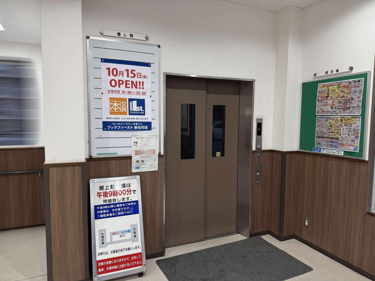 新石切プラザに訪れたのは2025年8月下旬。エレベーターホールに『ブックファースト』のオープンに関する貼紙を発見しました。