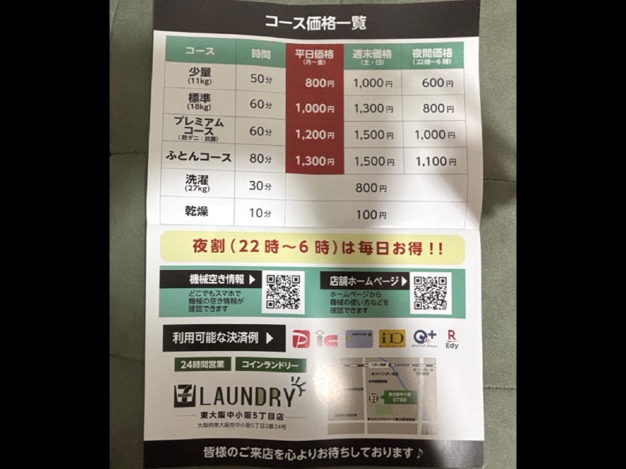 オープニングキャンペーンとして、ランドリー利用500円以上のレシートを『セブン-イレブン 東大阪中小阪5丁目店』に持参すると、先着300名様限定で景品がもらえるそうです。