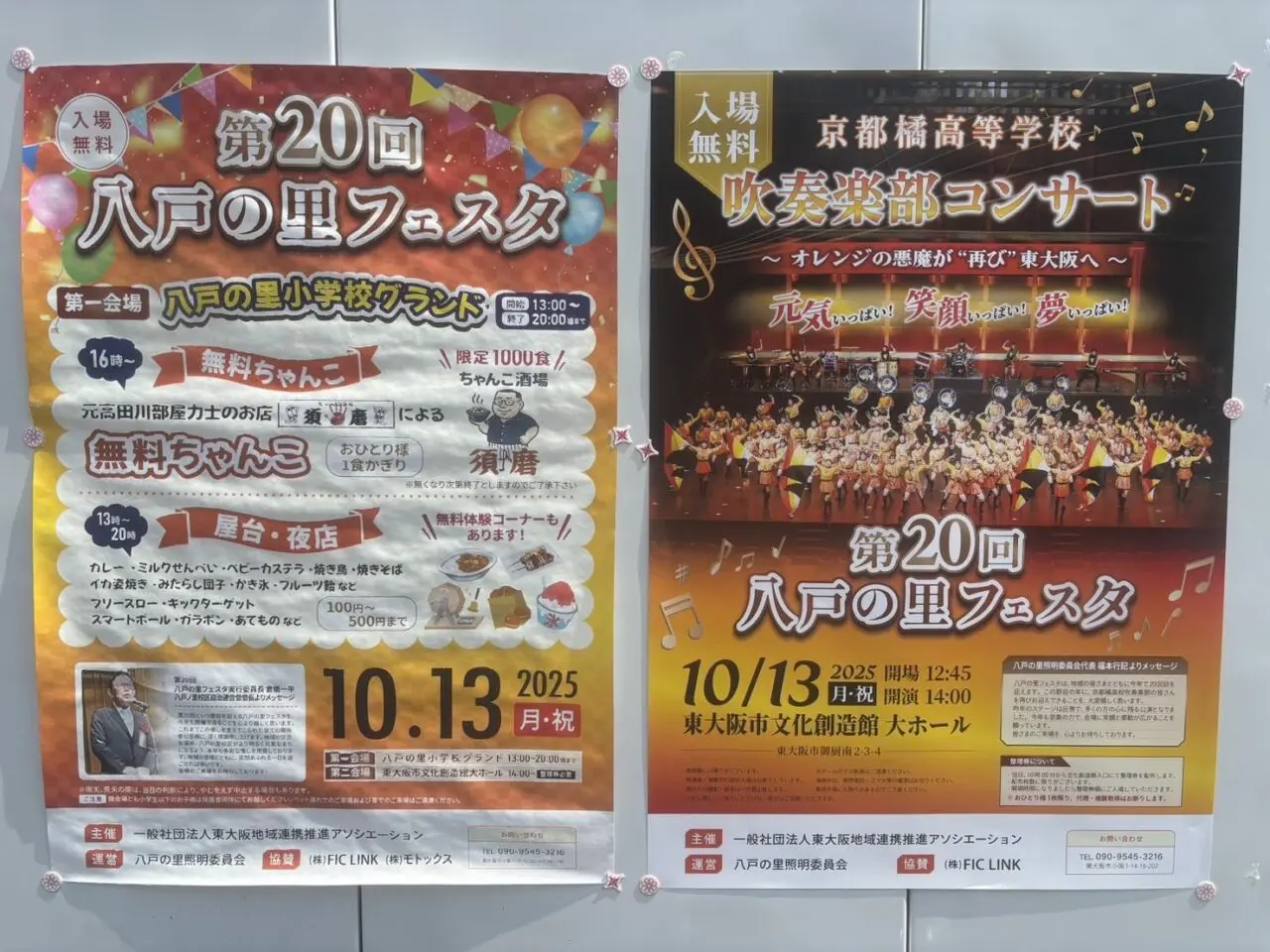 2025年10月13日(月・祝)、屋台やコンサートを楽しむことができるイベント『第20回 八戸の里フェスタ』が東大阪市内の2ヶ所で同日開催されます!