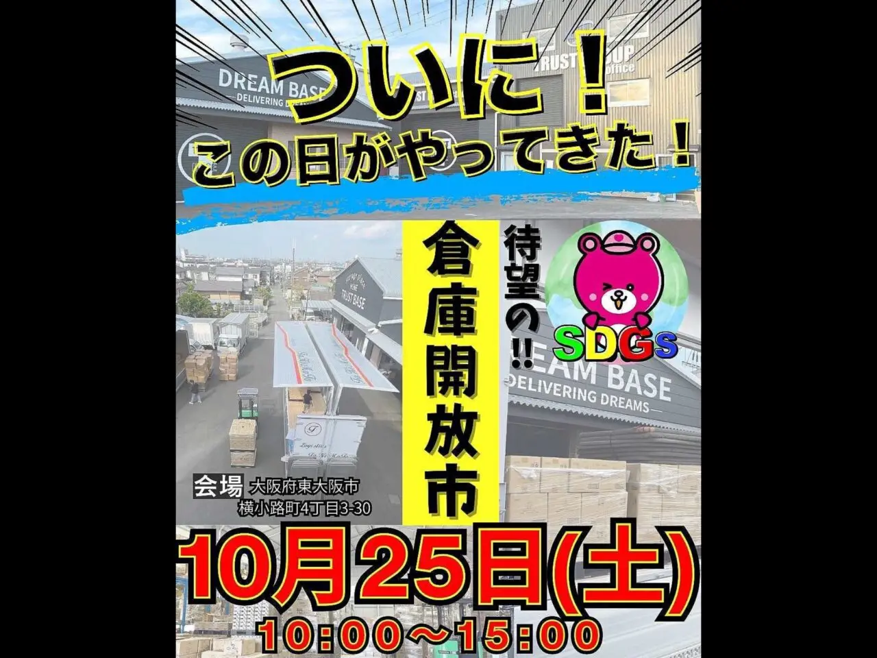 “圧倒的な安さ”で日用品などを販売する『Dream market(ドリームマーケット)』が、一日限定でTrust本部倉庫を一般開放するイベント『倉庫開放市』が開催されるようです!