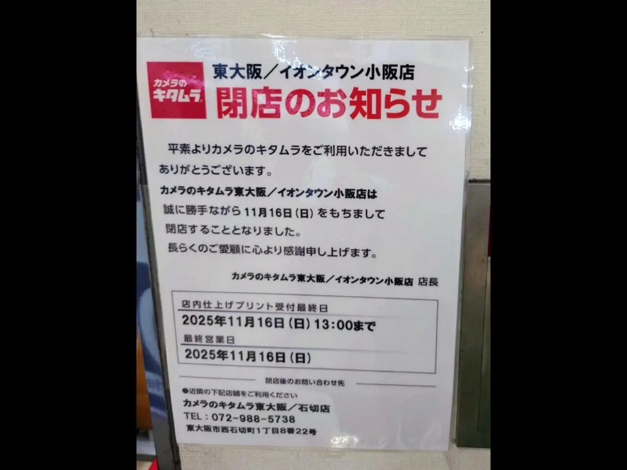 イオンタウン小阪に昔からある『カメラのキタムラ東大阪・イオンタウン小阪店』が閉店するようです。また、閉店日や最終受付日などをまとめています。