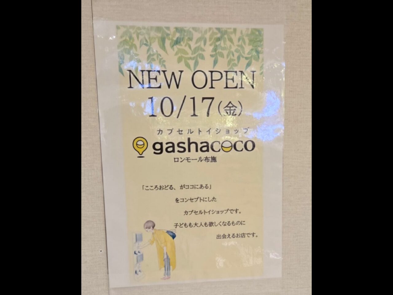 2025年10月中旬に届いた提供写真によると『gashacoco ロンモール布施(カプセルトイ専門店)』は2025年10月17日(金)にオープンしたようです。