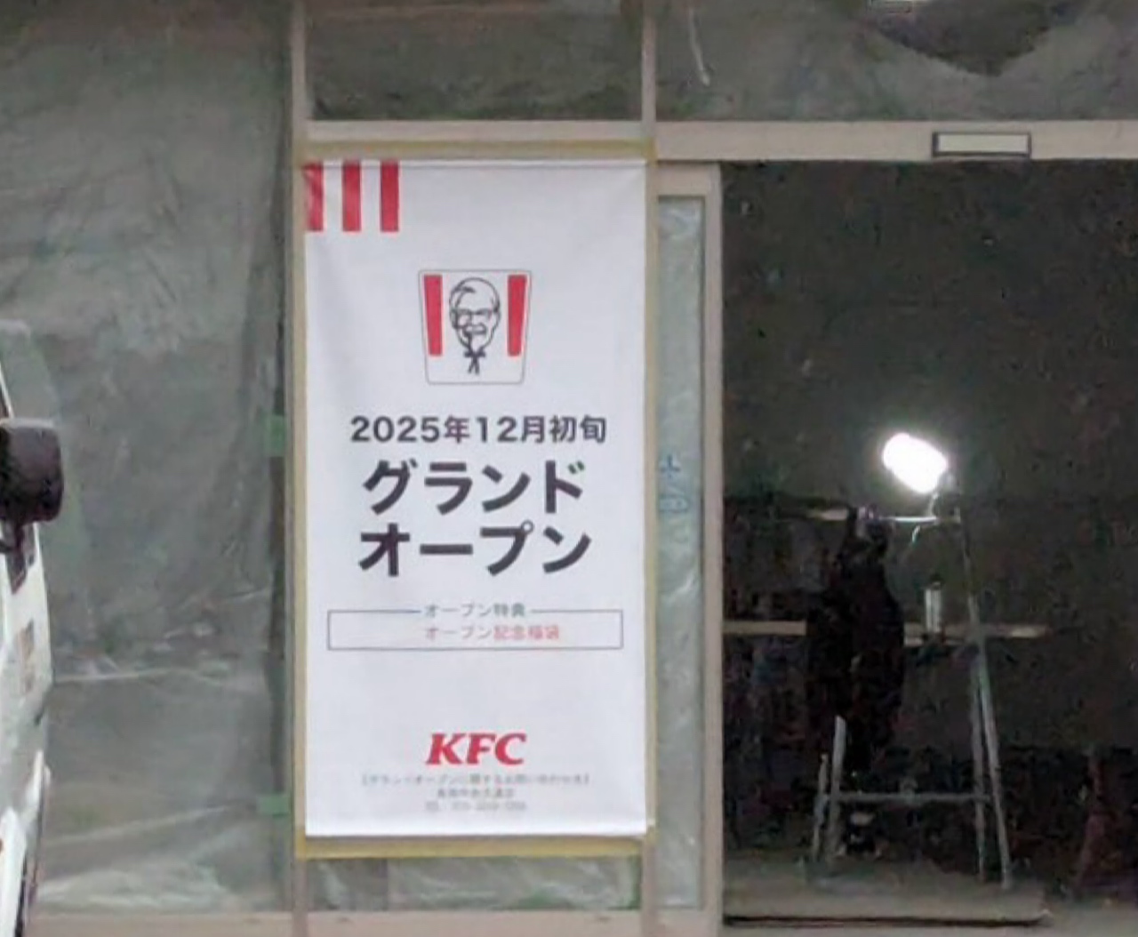 垂れ幕には2025年12初旬グランドオープンと書かれており、写真の様子を見る限り『ケンタッキー』は絶賛工事中の様子ですね。