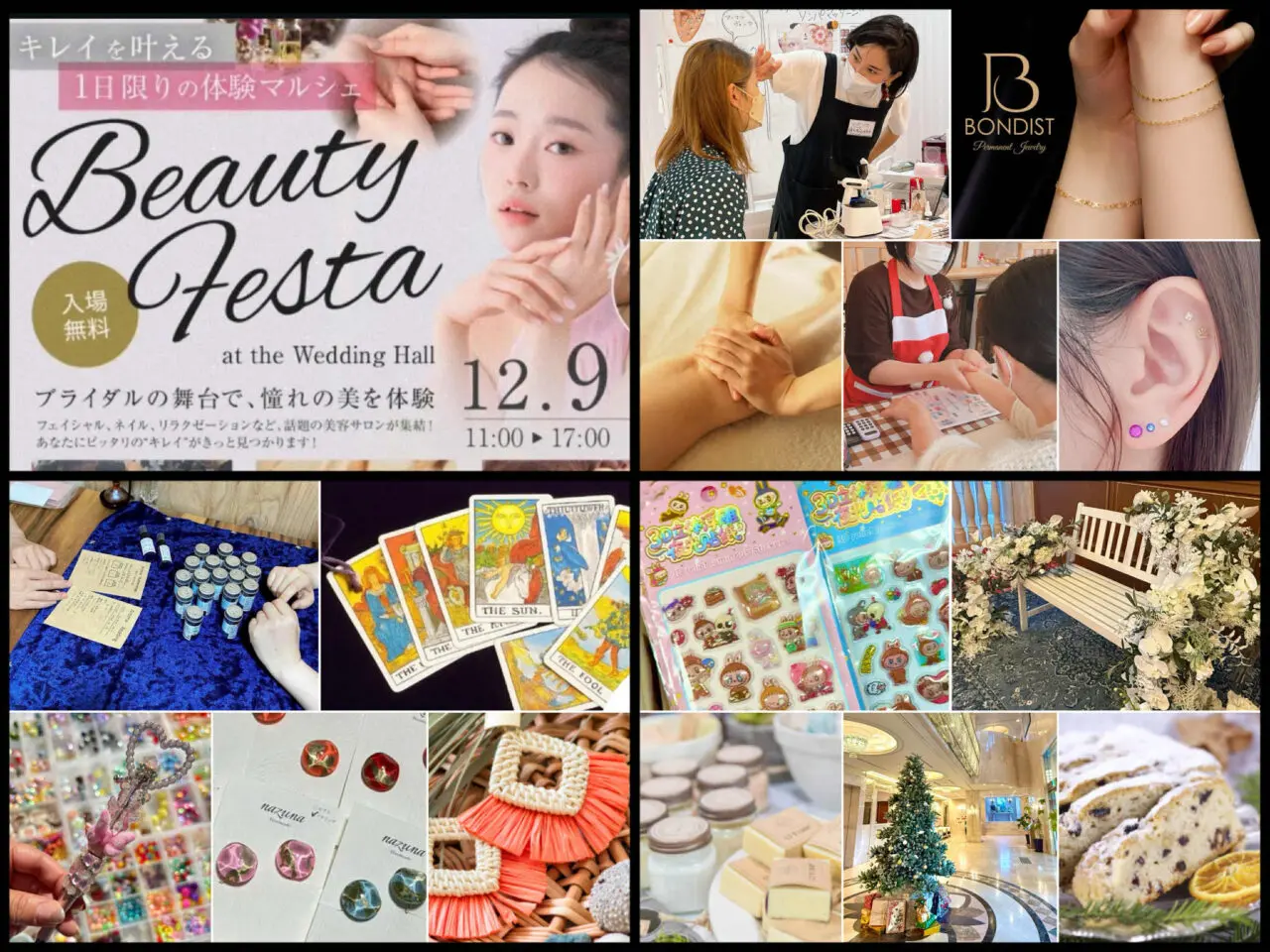 イベントでは、美容ブースだけではなく、体験型のワークショップ、ハンドメイドブース、占いコーナーなども予定されています。館内での撮影(フォトブースもあり)自由ですので、お子様連れでも楽しんで頂けます。