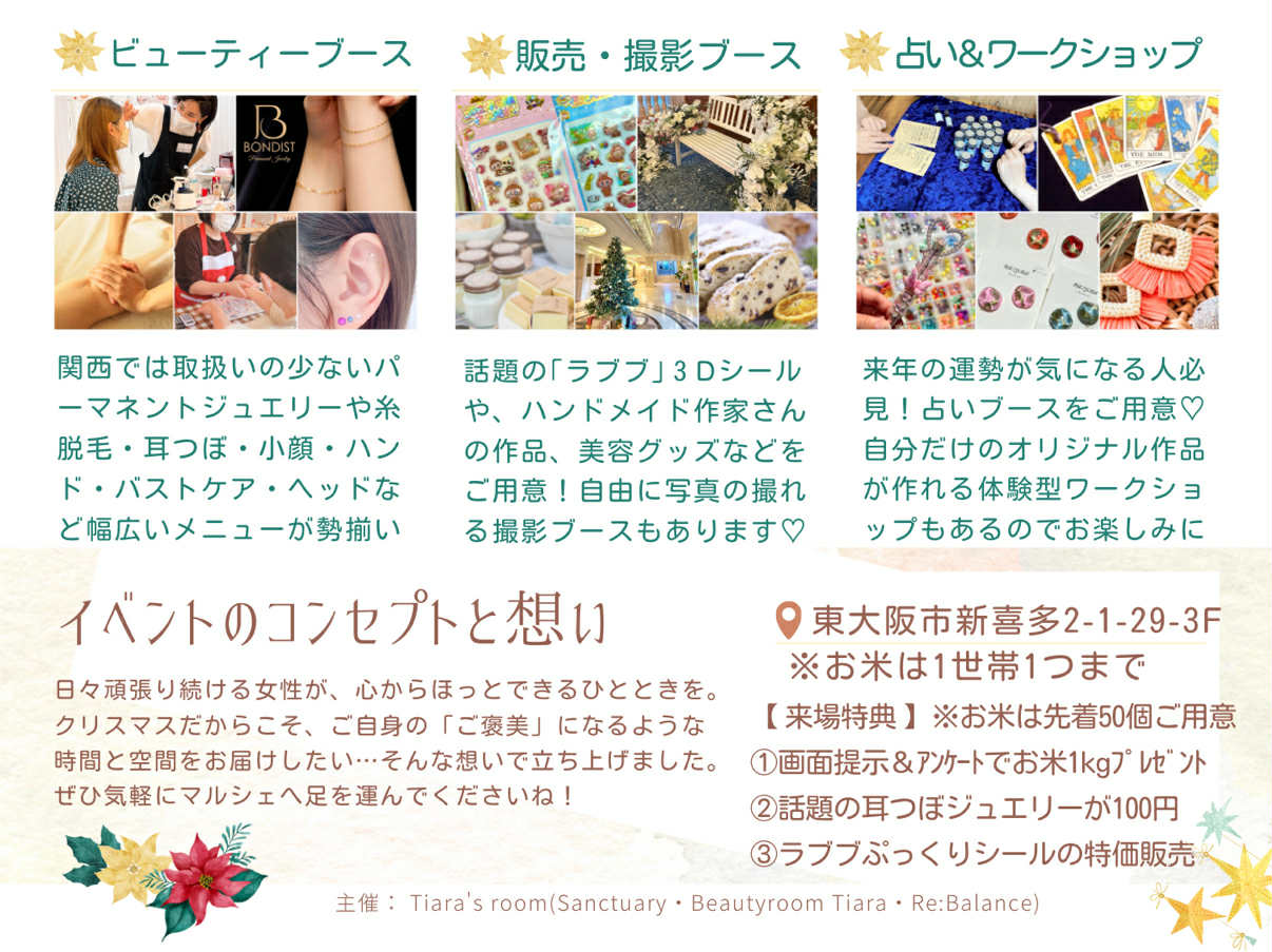 【東大阪市】お米1Kgの来場者プレゼント♪ベルクラシック大阪で『Beautyクリスマス ごほうびマルシェ』が開催されます!《2025年12月9日(火)開催・入場無料・駐車場無料》