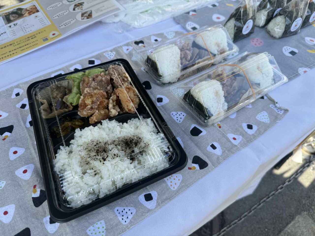 出張販売では、おむすび / いろどり弁当 / からあげ弁当 / おむすび弁当などの商品が販売されています。12時前に伺いましたが、在庫の残りは少なくなっていました。販売時間内でも売り切れ次第終了なので、必ず購入されたい方は早めに伺った方が良さそうです!