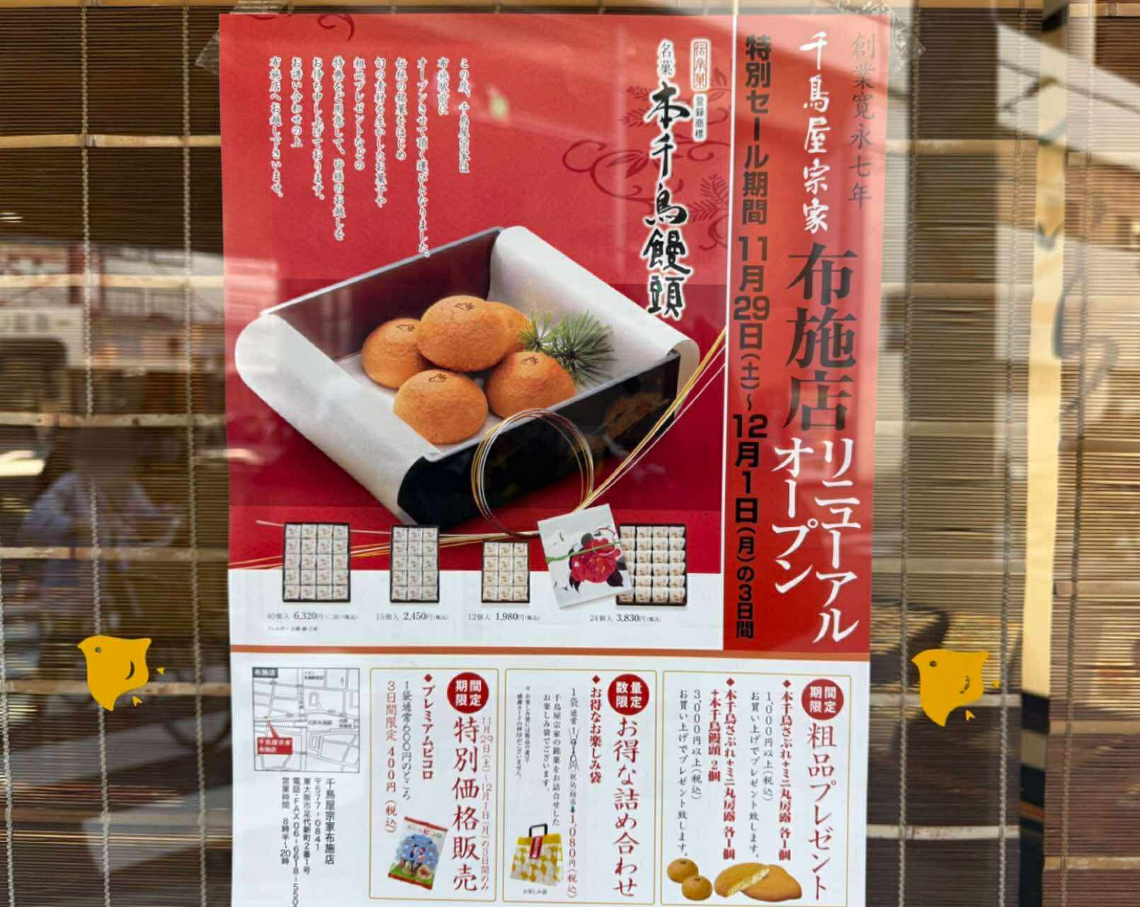 ≪2025年11月28日撮影 千鳥屋宗家布施店の貼紙≫