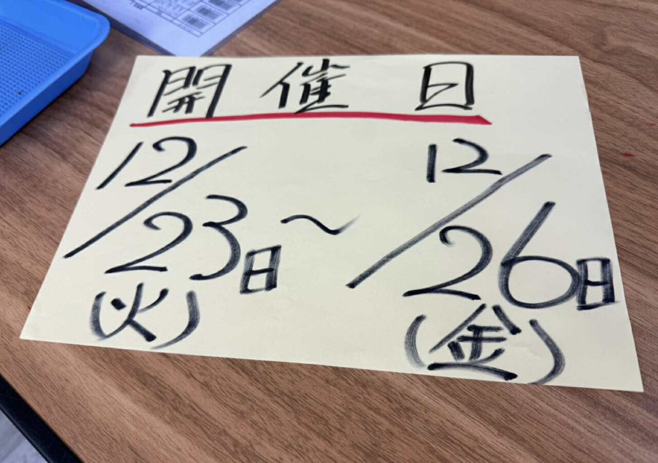 - 2025年12月23日(火)~2025年12月26日(金)8時30分~18時00分