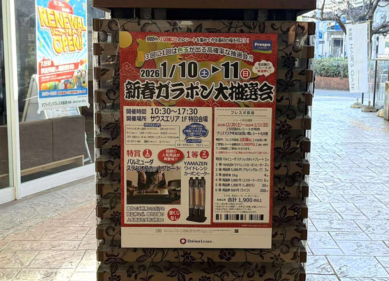 【東大阪市】年始にフレスポ長田で開催される『新春ガラポン大抽選会』についてまとめています!
