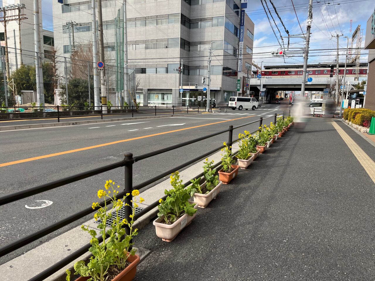 『菜の花』が植えられているのは、司馬遼太郎記念館周辺となる近鉄奈良線『八戸ノ里駅』周辺、大阪府立布施高等学校横、ライフ八戸ノ里店横。
