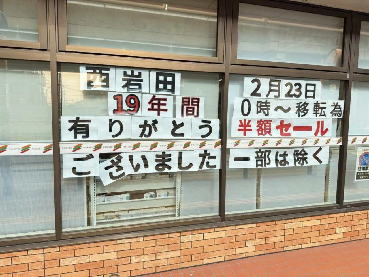 【東大阪市】19年間営業を続けていた若江岩田駅から1番近い『セブン-イレブン』が移転のため閉店。移転に伴い半額セールが開催されます。