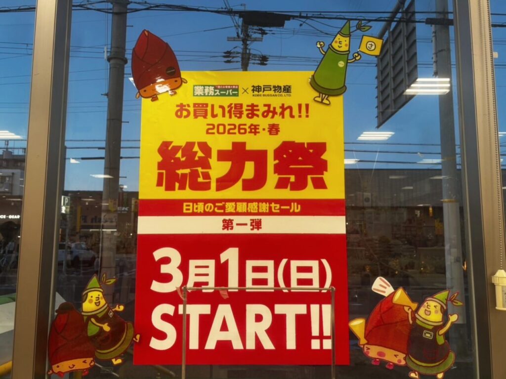 業務スーパー×神戸物産のコラボレーションとして、2026年・春の総力祭『日頃のご愛顧感謝セール』が開催されます!また東大阪市内にある店舗もまとめています。