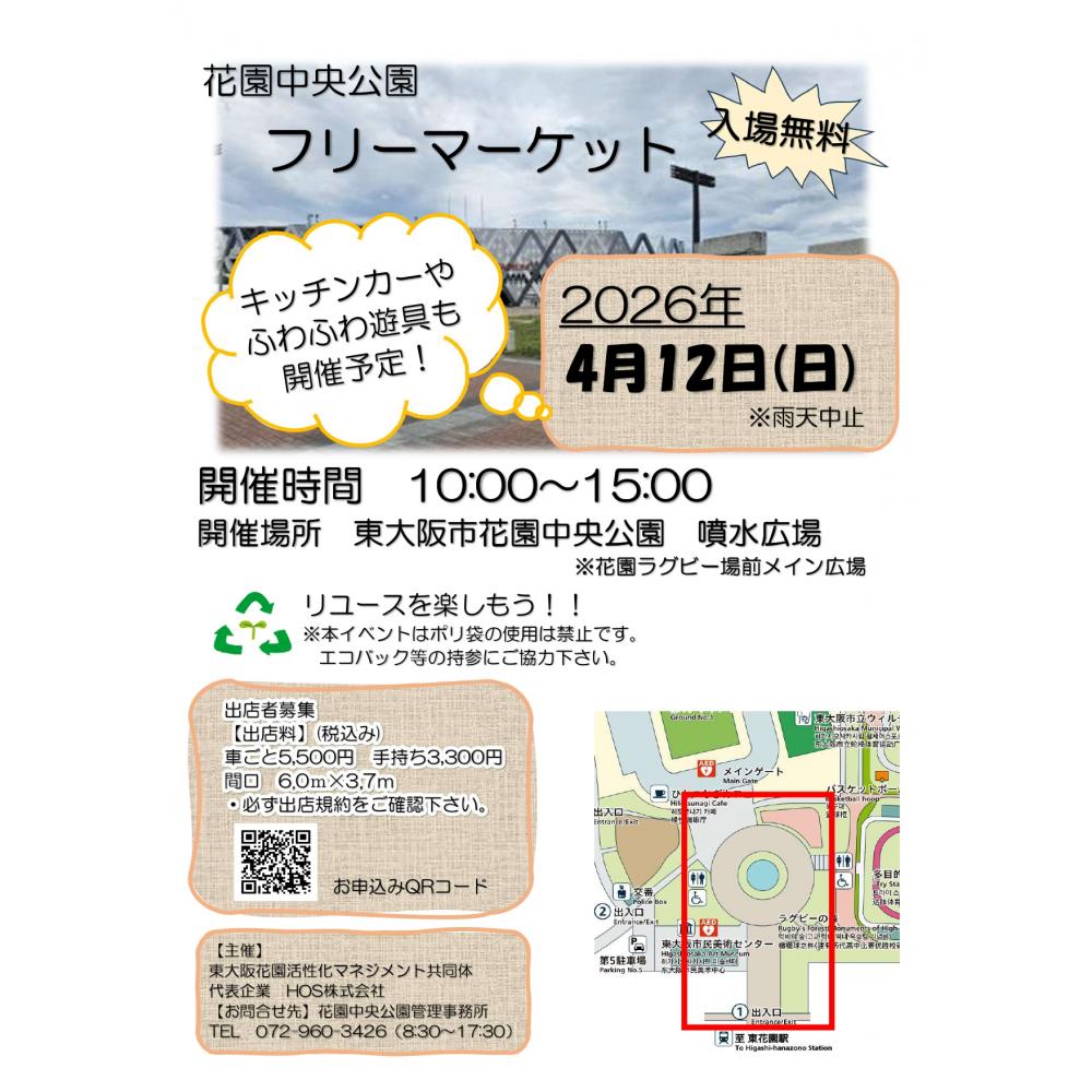 【東大阪市】4/12(日)花園中央公園フリーマーケット開催&出店者も募集中!【HOS株式会社】