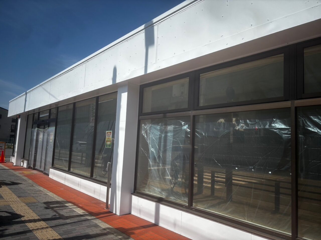 また、閉店直後に訪れた時にはなかった店外の養生シートが出入り口付近に張り巡らされており、着々とオープンに向け工事をしている様子でした。