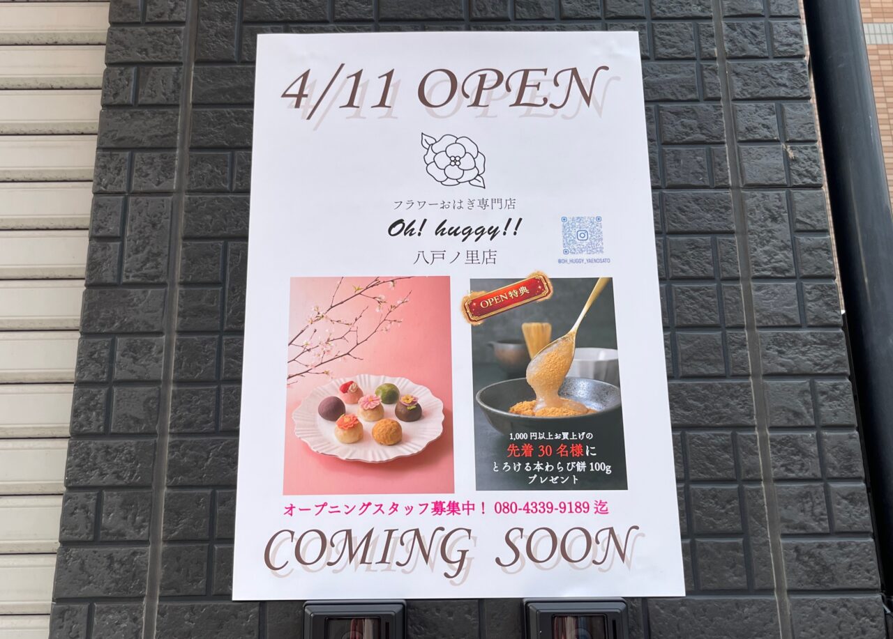『フラワーおはぎ専門店 oh!huggy!! 八戸ノ里店』のオープン日は、2026年4月11日(土)。